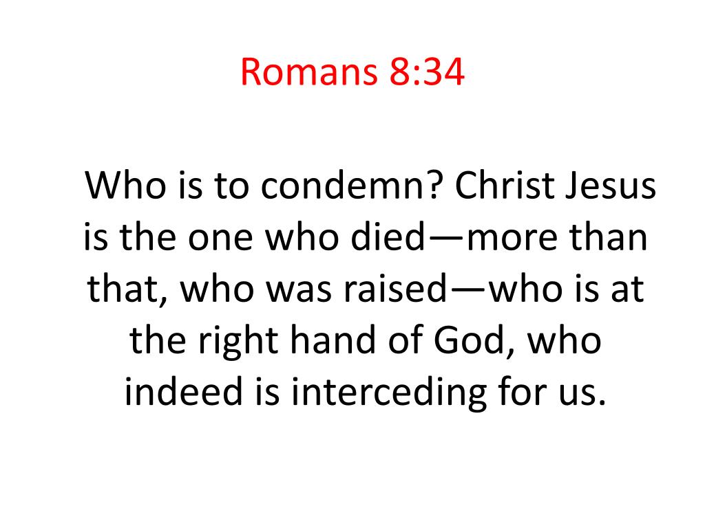 Romans 8:34 Who is to condemn? Christ Jesus is the one who died—more than that, who was raised—who is at the right hand of God, who indeed is interceding for us.