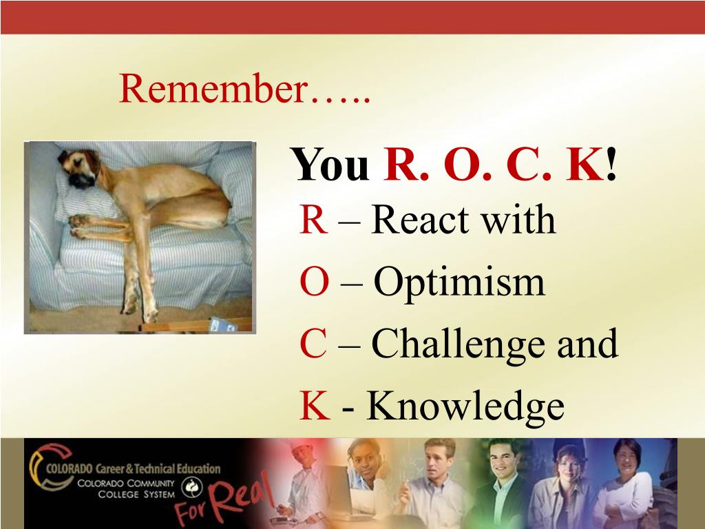 Remember….. You R. O. C. K! R – React with O – Optimism C – Challenge and K - Knowledge