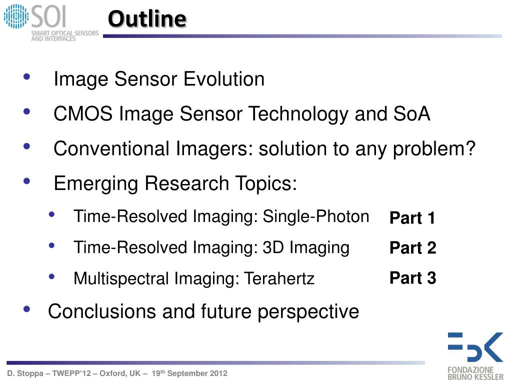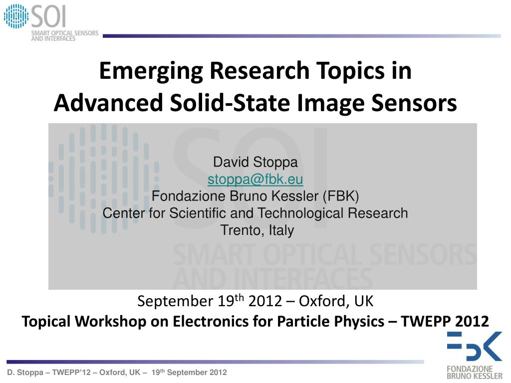Emerging Research Topics in Advanced Solid-State Image Sensors David Stoppa stoppa@fbk.eu Fondazione Bruno Kessler (FBK) Center for Scientific and Technological Research Trento, Italy September 19th 2012 – Oxford, UK Topical Workshop on Electronics for Particle Physics – TWEPP 2012