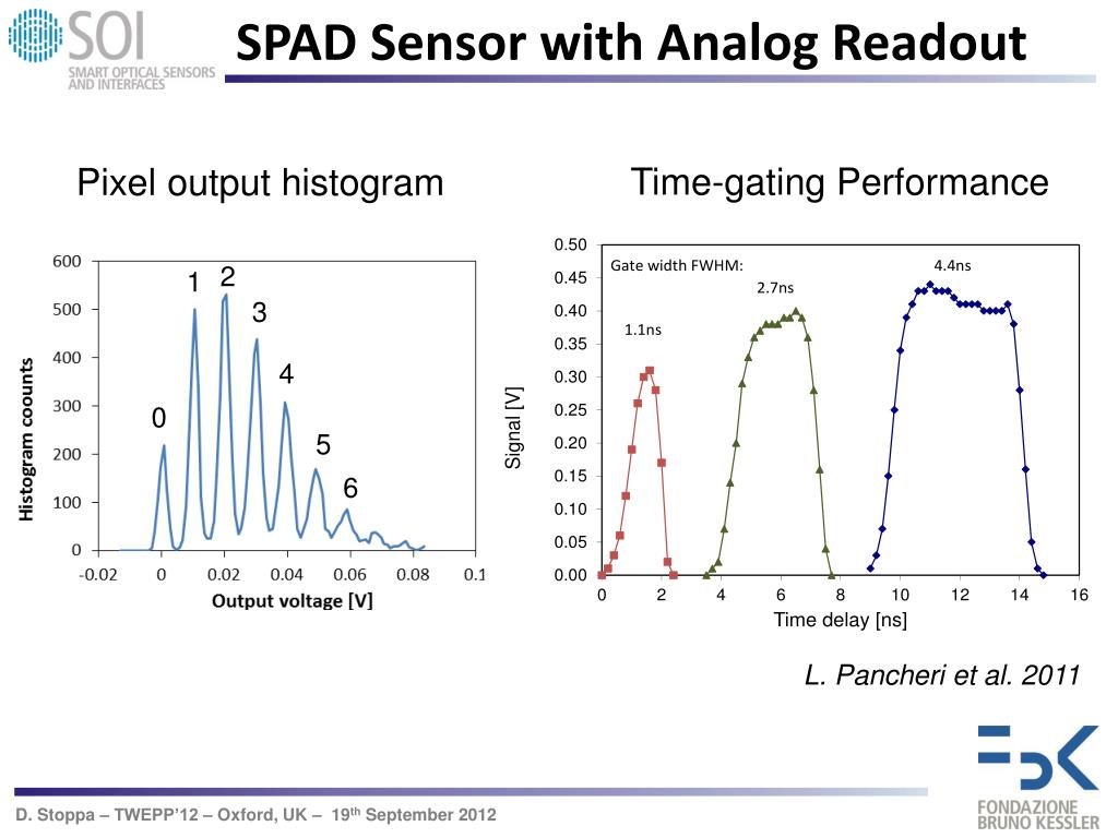SPAD Sensor with Analog Readout Time-gating Performance Pixel output histogram 2 1 3 4 0 5 6 L. Pancheri et al. 2011
