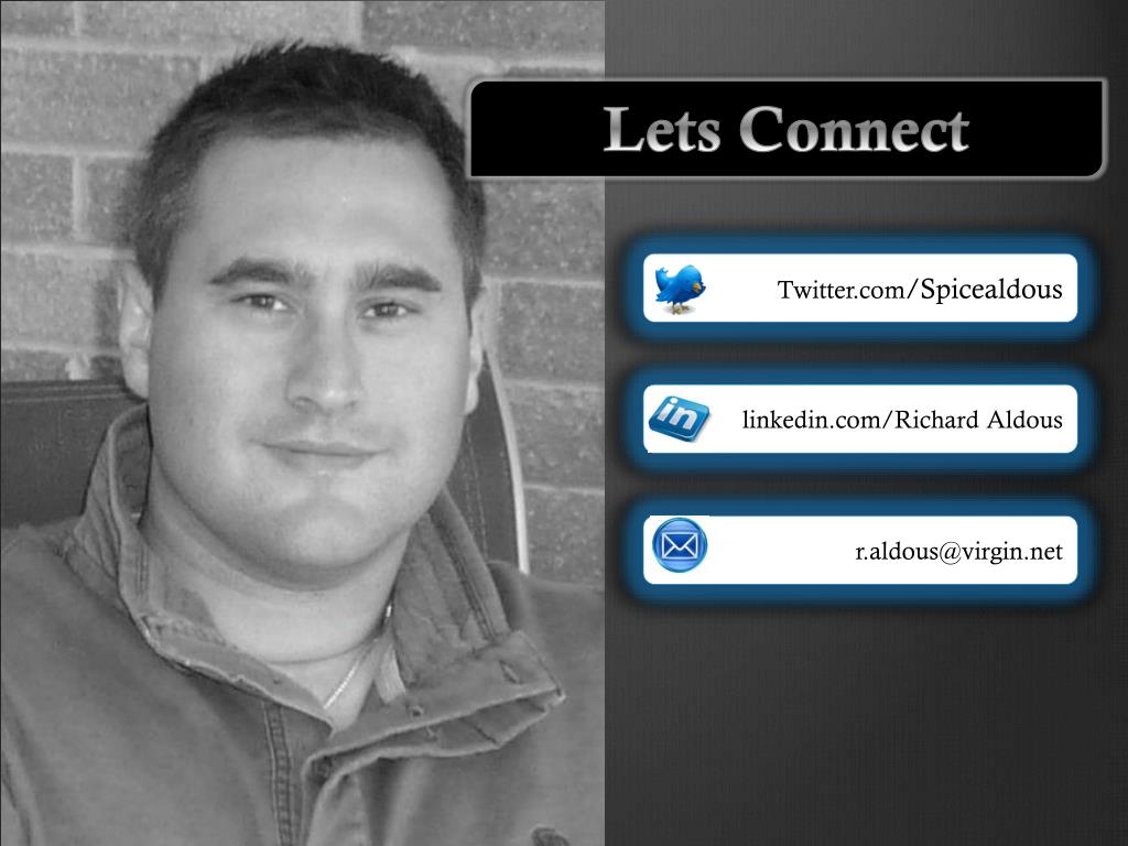 Twitter.com/Spicealdous Lets Connect linkedin.com/Richard Aldous r.aldous@virgin.net