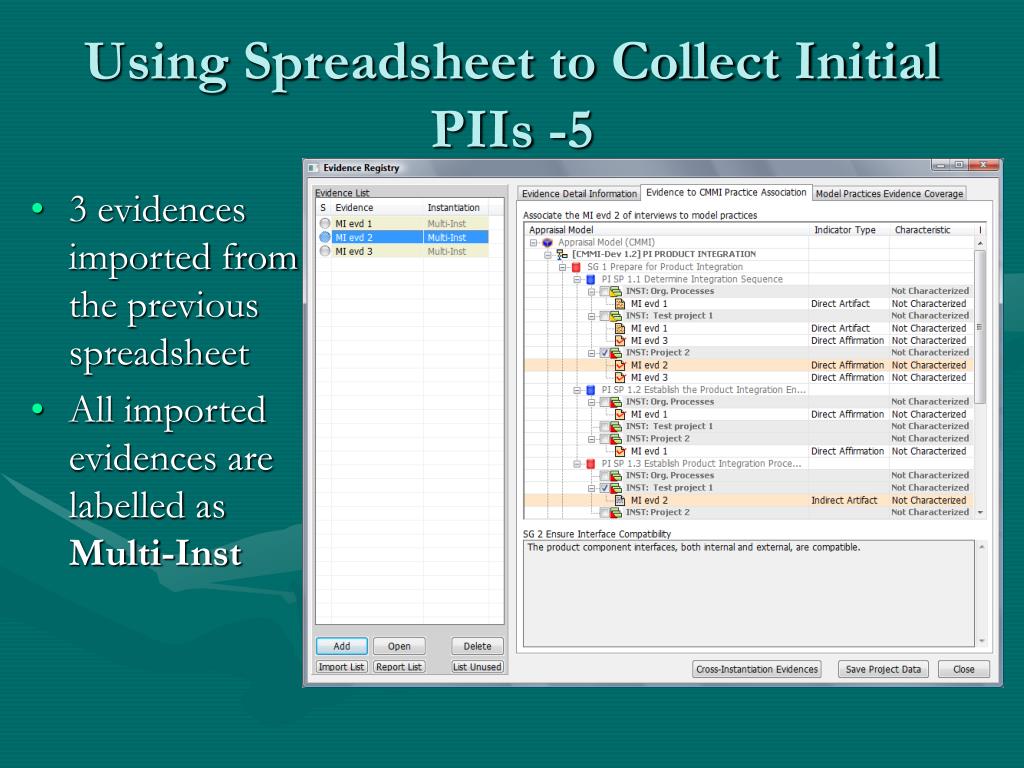 3 evidences imported from the previous spreadsheet All imported evidences are labelled as Multi-Inst Using Spreadsheet to Collect Initial PIIs -5