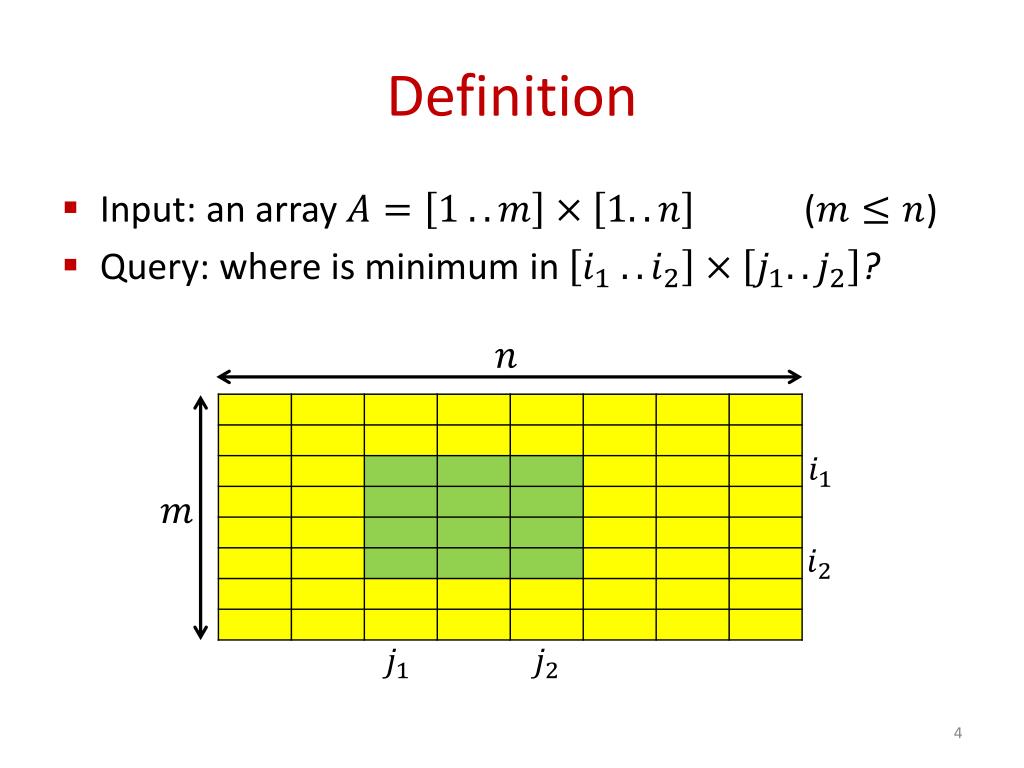 Definition • Input: an array • Query: where is minimum in ? ()