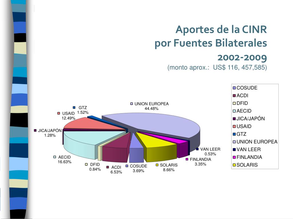 Aportes de la CINR por Fuentes Bilaterales2002-2009 (montoaprox.: US$ 116, 457,585)