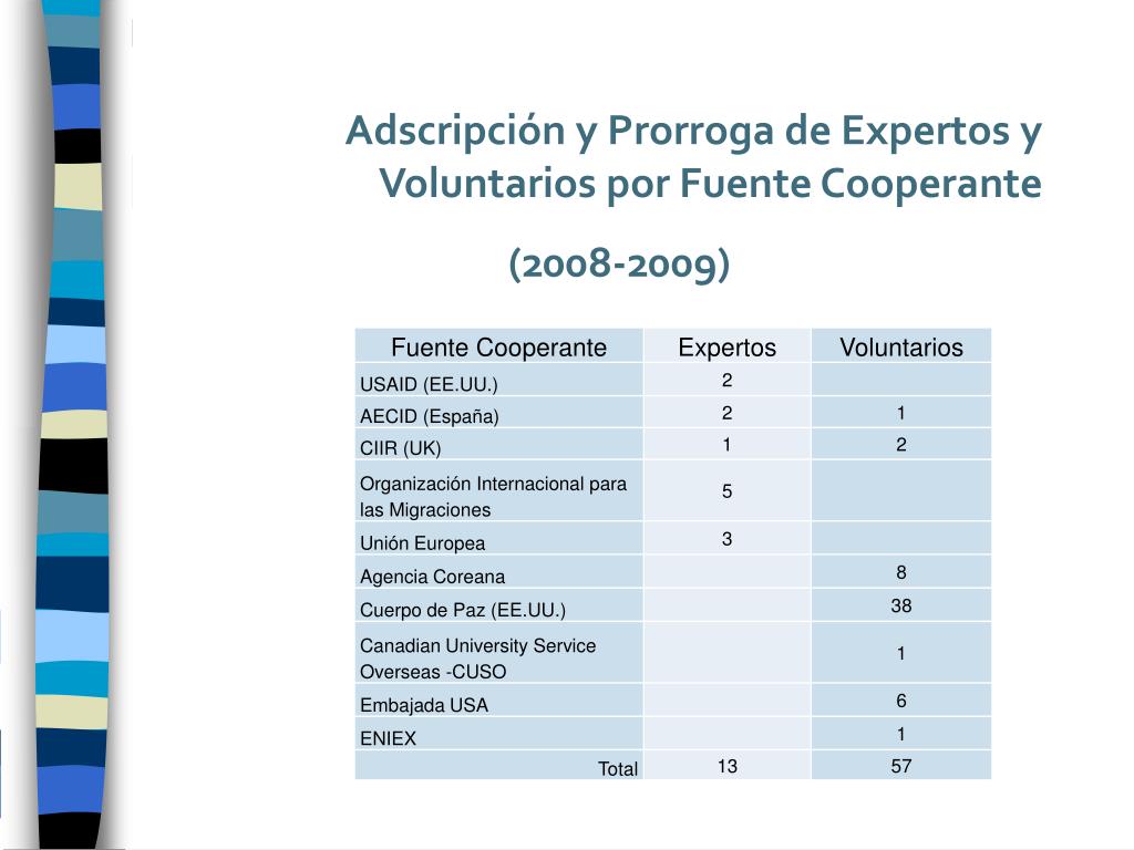 Adscripción y Prorroga de Expertos y Voluntarios por Fuente Cooperante (2008-2009)