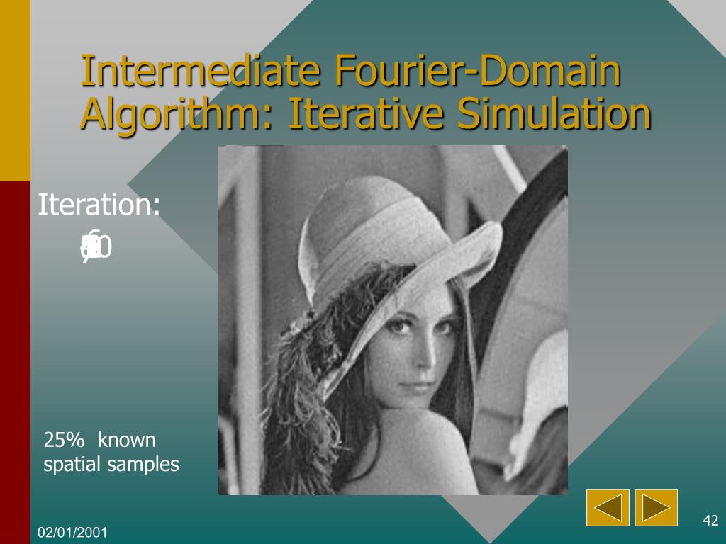 Intermediate Fourier-Domain Algorithm: Iterative Simulation Iteration: 6 4 5 8 10 1 2 3 9 7 25% known spatial samples
