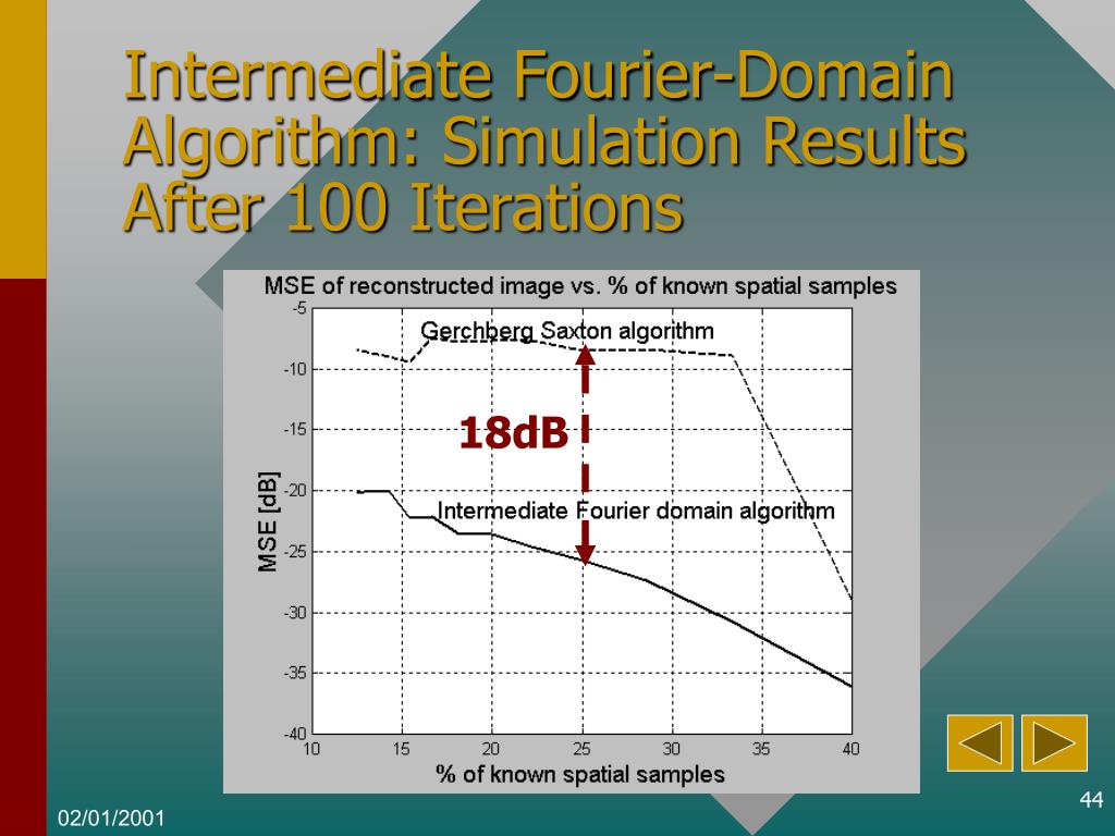 Intermediate Fourier-Domain Algorithm: Simulation Results After 100 Iterations 18dB