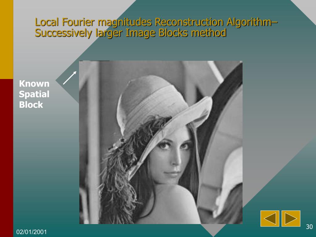 Local Fourier magnitudes Reconstruction Algorithm– Successively larger Image Blocks method Known Spatial Block