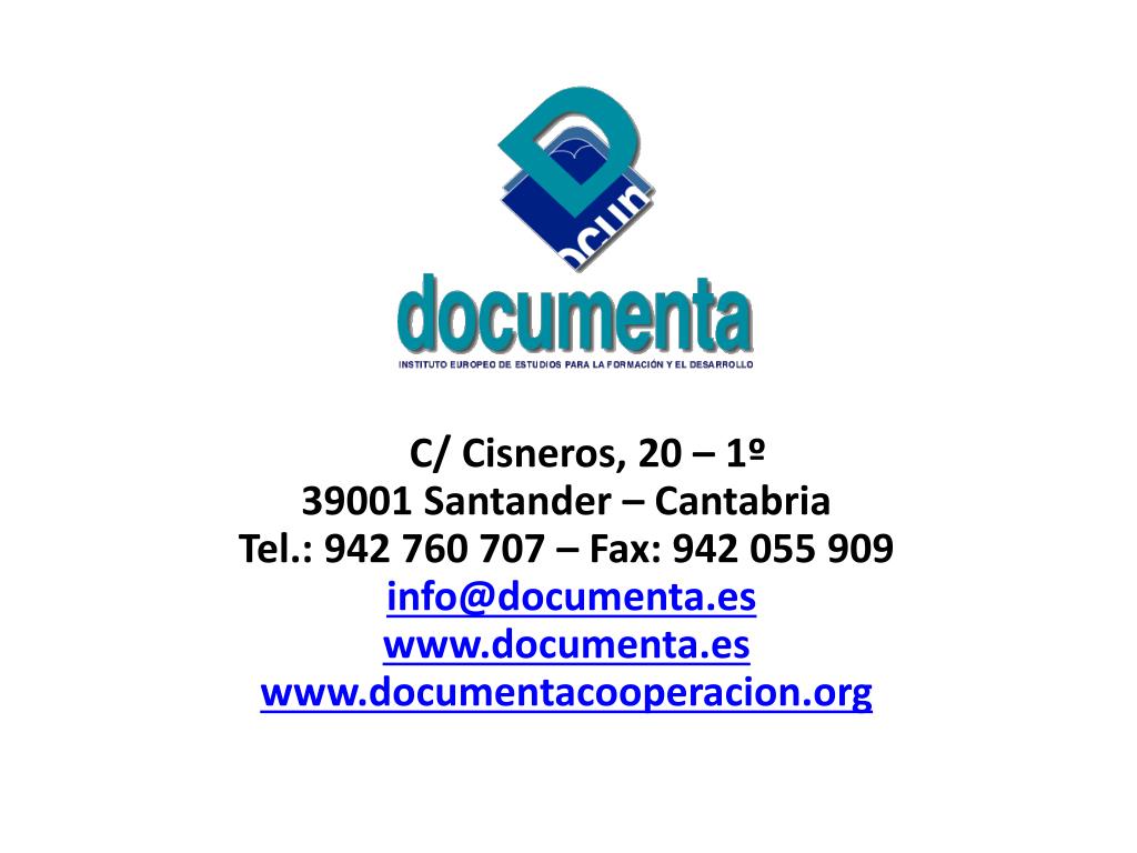 C/ Cisneros, 20 – 1º 39001 Santander – Cantabria Tel.: 942 760 707 – Fax: 942 055 909 info@documenta.es www.documenta.es www.documentacooperacion.org
