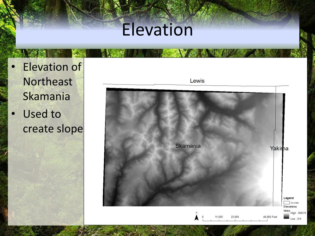 Elevation • Elevation of Northeast Skamania • Used to create slope