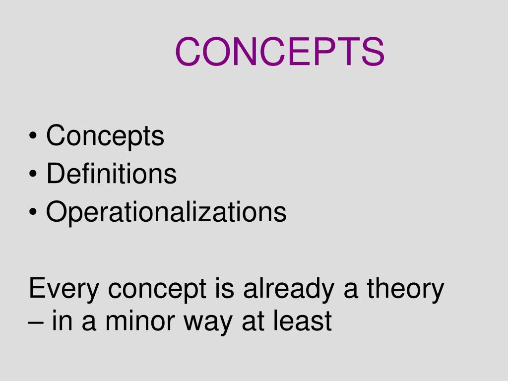 Concepts Definitions Operationalizations Every concept is already a theory – in a minor way at least CONCEPTS