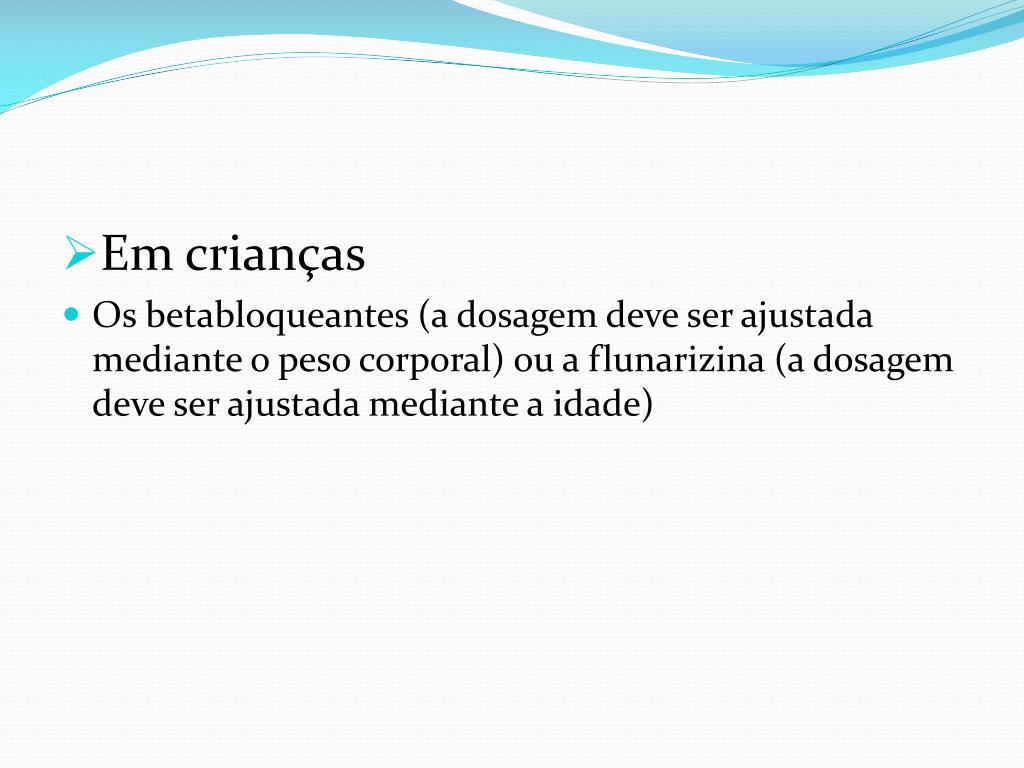 Em crianças • Os betabloqueantes (a dosagem deve ser ajustada mediante o peso corporal) ou a flunarizina (a dosagem deve ser ajustada mediante a idade)
