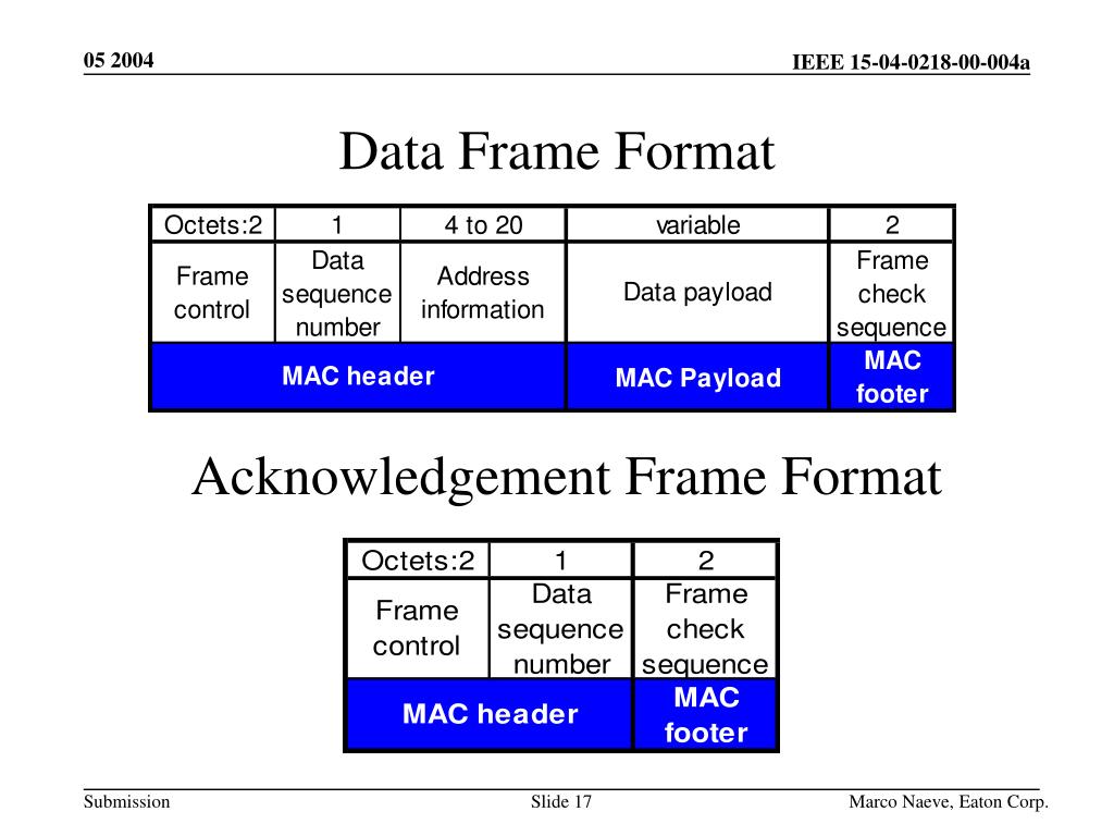 Data Frame Format Acknowledgement Frame Format Marco Naeve, Eaton Corp.
