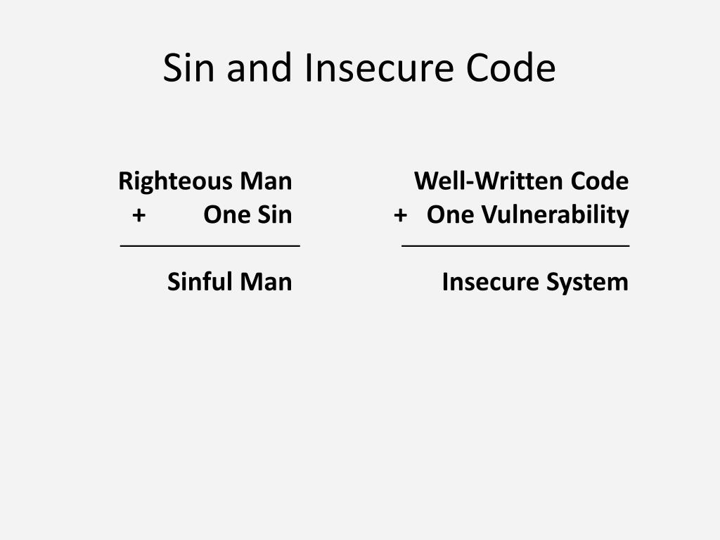 Sin and Insecure Code Righteous Man + One Sin Sinful Man Well-Written Code + One Vulnerability Insecure System