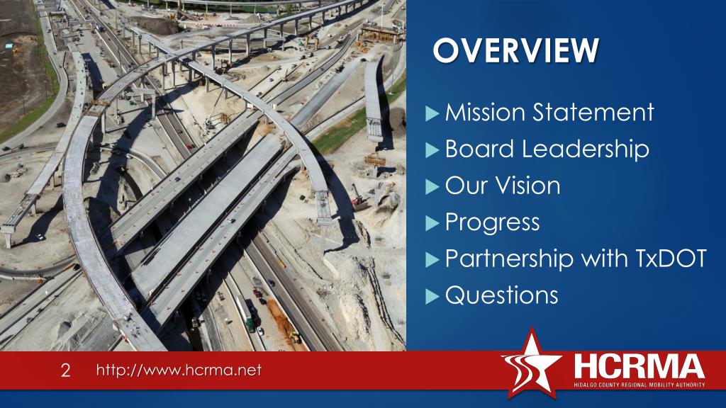 Hidalgo County regional Mobility Authority Project Progress 1 http://www.hcrma.net