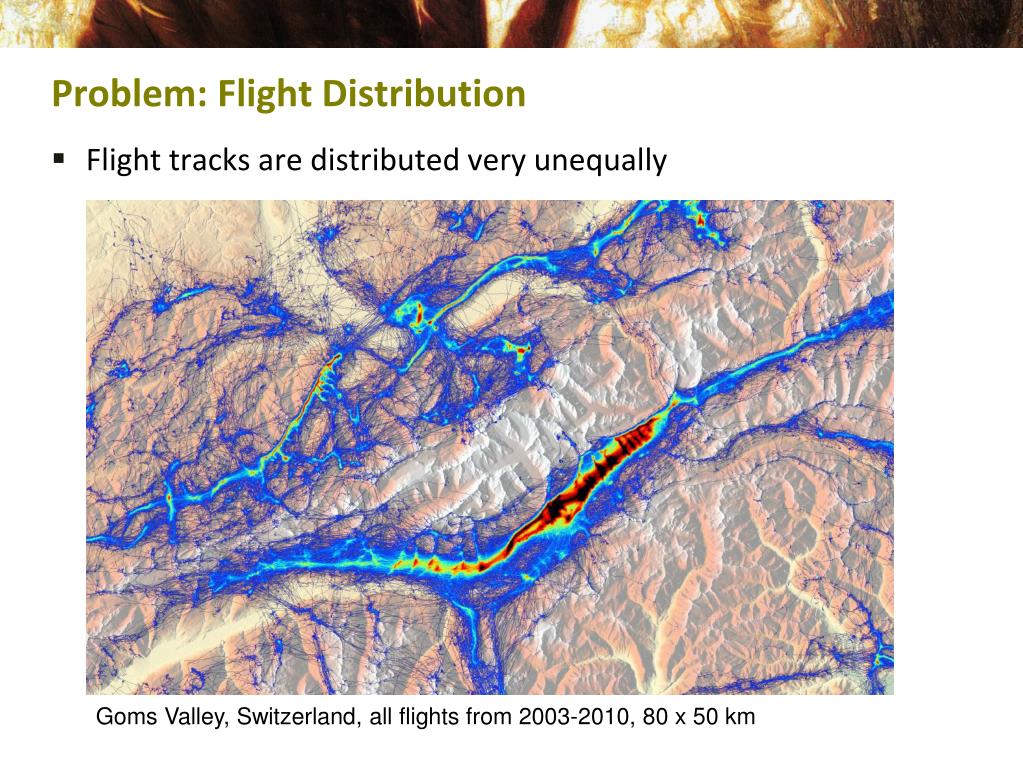 Problem: Flight Distribution • Flight tracks are distributed very unequally Goms Valley, Switzerland, all flights from 2003-2010, 80 x 50 km