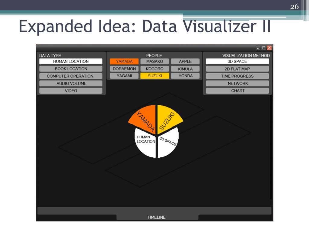 Data Visualizer II: Improvements • Help focusing on data composition • Easy to modify/manage • Better visual