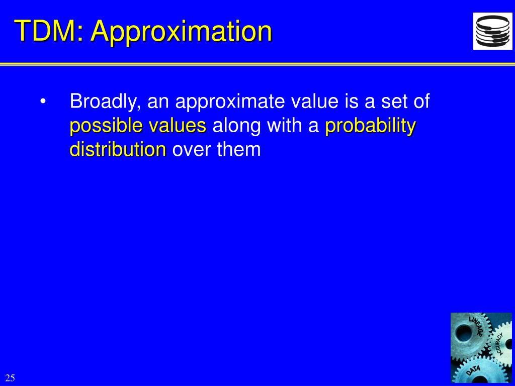 TDM: Approximation • Broadly, an approximate value is a set of possible values along with a probability distribution over them