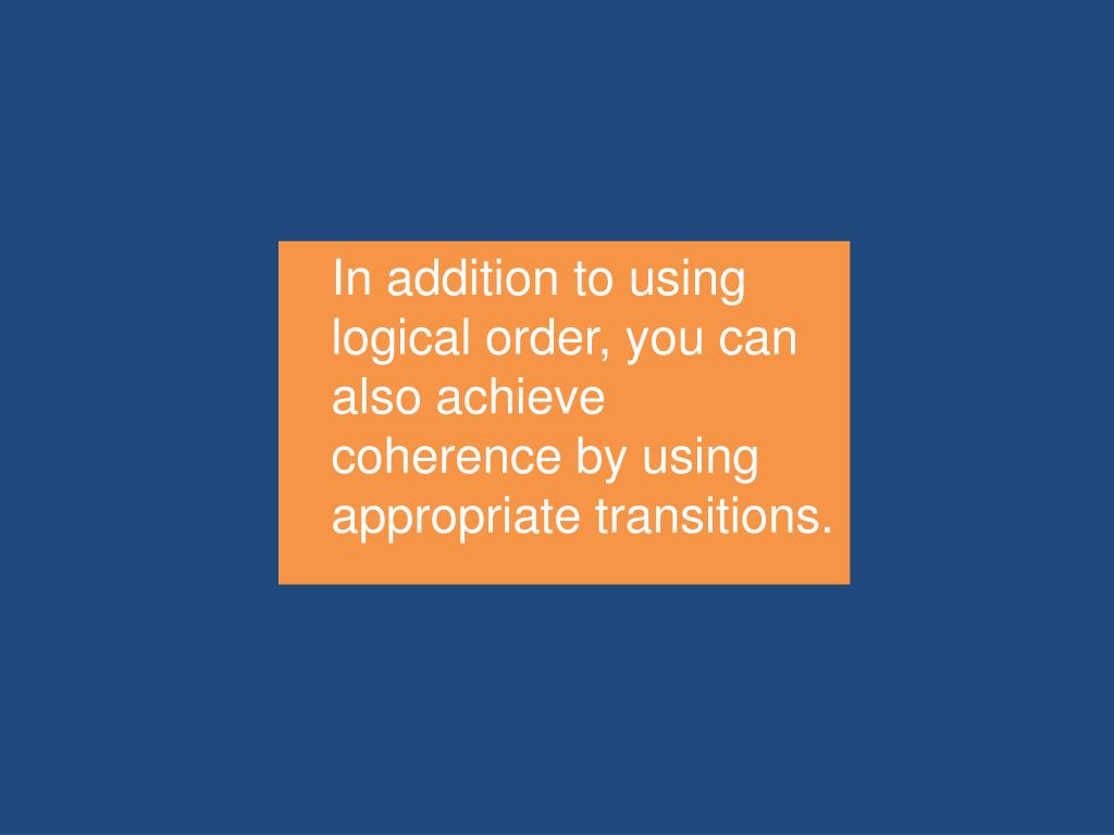 In addition to using logical order, you can also achieve coherence by using appropriate transitions.