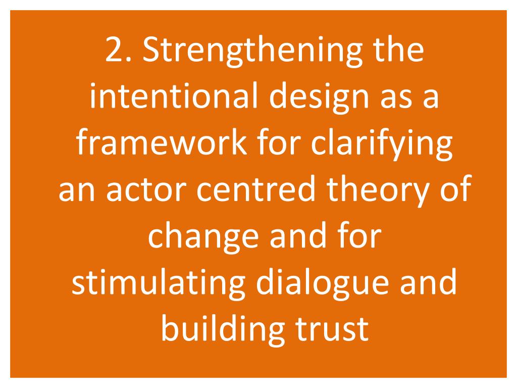 2. Strengthening the intentional design as a framework for clarifying an actor centred theory of change and for stimulating dialogue and building trust