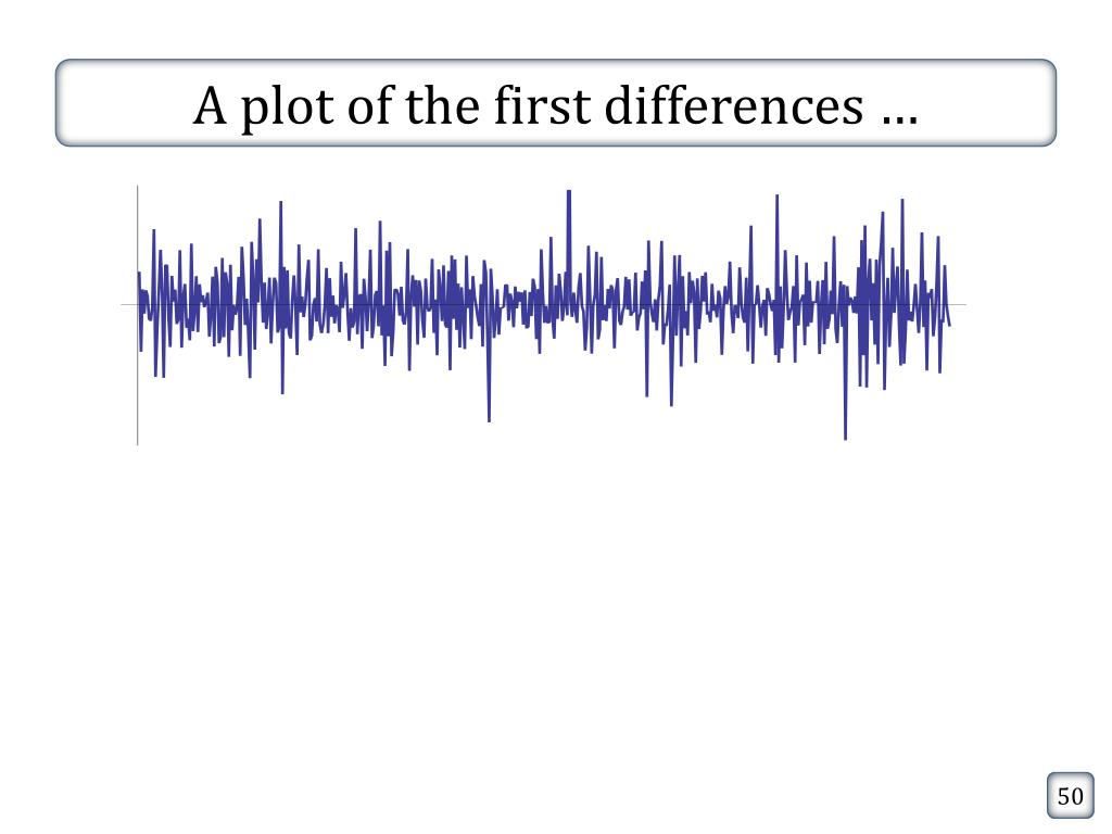 An aside: should we work with price differences or levels? • Differencing at the resolution of the data obscures longer-term features. • “Differencing is a high-pass filter.”