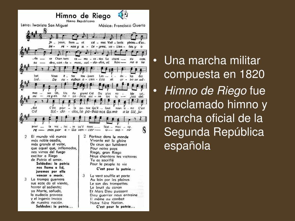 Una marcha militar compuesta en 1820 • Himno de Riego fue proclamado himno y marcha oficial de la Segunda República española