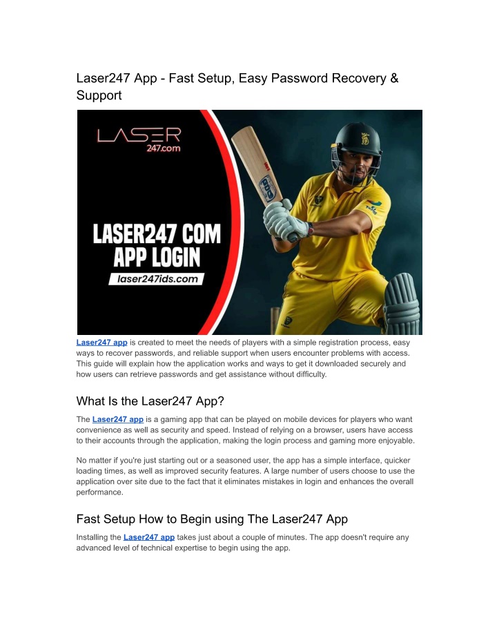 Laser247 app is created to meet the needs of players with a simple registration process, easy ways to recover passwords, and reliable support when users encounter<br><br>Link: https://laser247ids.com/laser247-app/