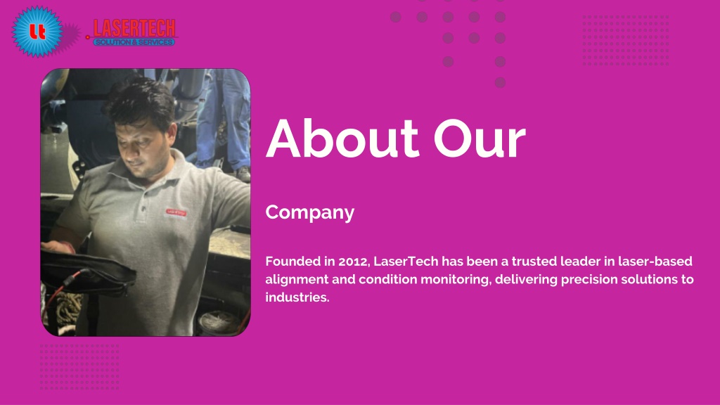 About Our Company Founded in 2012, LaserTech has been a trusted leader in laser-based alignment and condition monitoring, delivering precision solutions to industries.