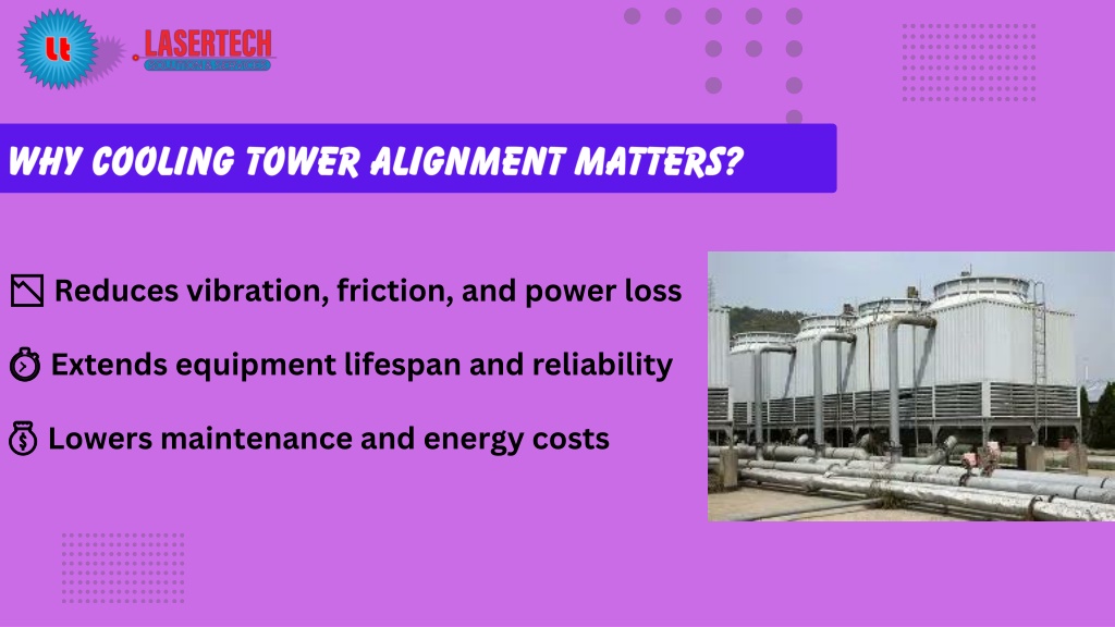 WHY COOLING TOWER ALIGNMENT MATTERS? 📉 Reduces vibration, friction, and power loss ⏱️ Extends equipment lifespan and reliability 💰 Lowers maintenance and energy costs