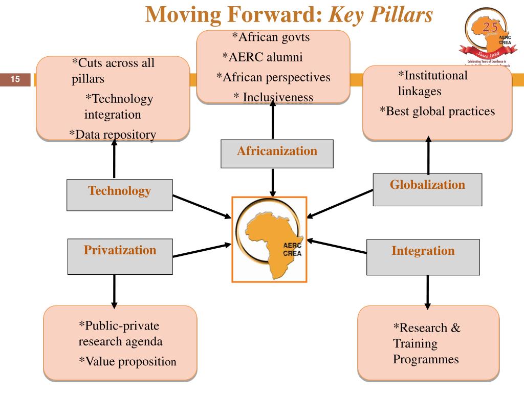 Moving Forward: Key Pillars • *African govts • *AERC alumni • *African perspectives • * Inclusiveness • *Cuts across all pillars • *Technology integration • *Data repository • *Institutional linkages • *Best global practices Africanization Globalization Technology Privatization Integration • *Public-private research agenda • *Value proposition • *Research & Training Programmes