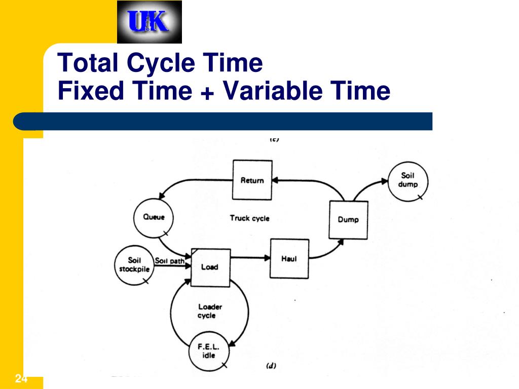 CE403 Construction Methodology. Loaders & Haulers. Estimating Loader Production. The product of average bucket load multiplied by cycles per hour for EQ 2-1. Production = Volume per Cycle x Cycles per Hour. Basic Loader Cycle Time. Cycle time includes: Loading Dumping