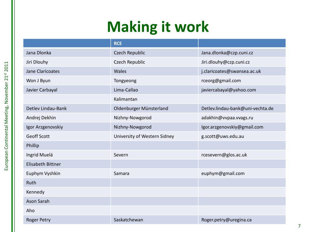 European Continental Meeting, November 21st 2011 Making it work