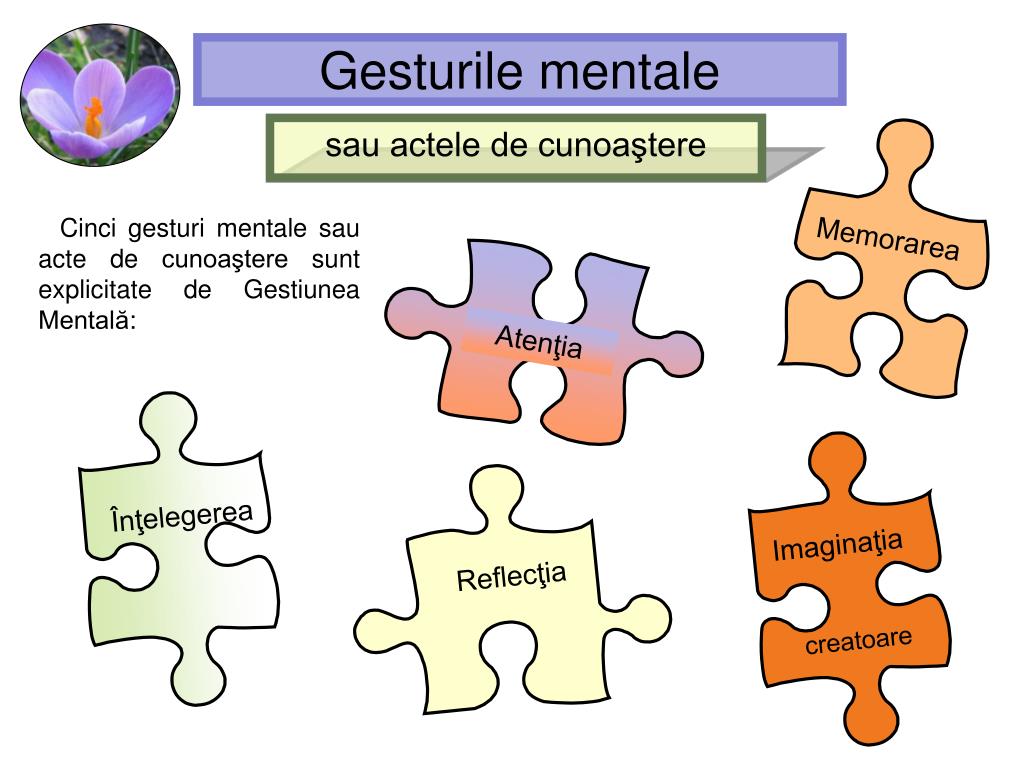 Gesturile mentale. sau. actele de cunoaştere. Reflecţia. Înţelegerea. Memorarea. Imaginaţia. Atenţia. creatoare. Gesturile mentale. sau actele de cunoaştere. Cinci gesturi mentale sau acte de cunoaştere sunt explicitate de Gestiunea Mentală :. Gesturile mentale.