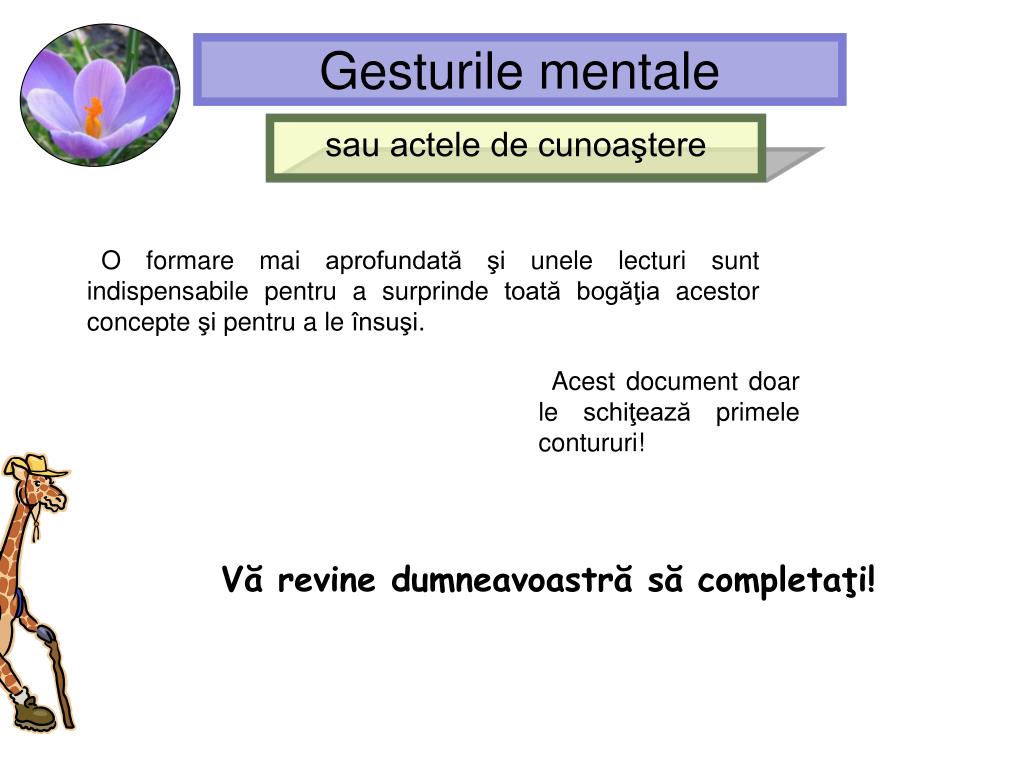 Gesturile mentale sau actele de cunoaştere O formare mai aprofundatăşi unele lecturi sunt indispensabile pentru a surprinde toată bogăţia acestor concepte şi pentru a le însuşi. Acest document doar le schiţează primele contururi! Vă revine dumneavoastră să completaţi!