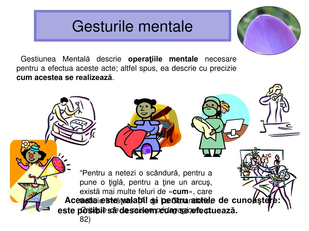 Gesturile mentale Acest “cum”este aproape întotdeauna lăsat la o parte în definiţiile din dicţionare şi în practica pedagogică. Gestiunea Mentală oferă termenii pentru a-l descrie.