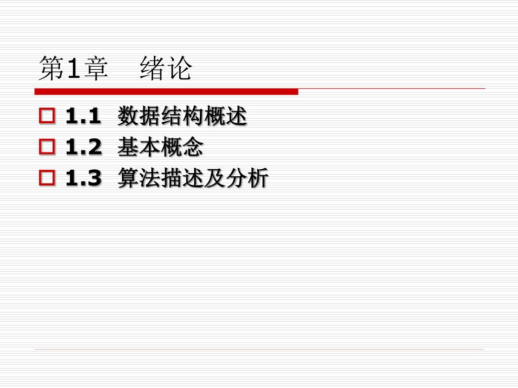 第1章 绪论 • 1.1 数据结构概述 • 1.2 基本概念 • 1.3 算法描述及分析