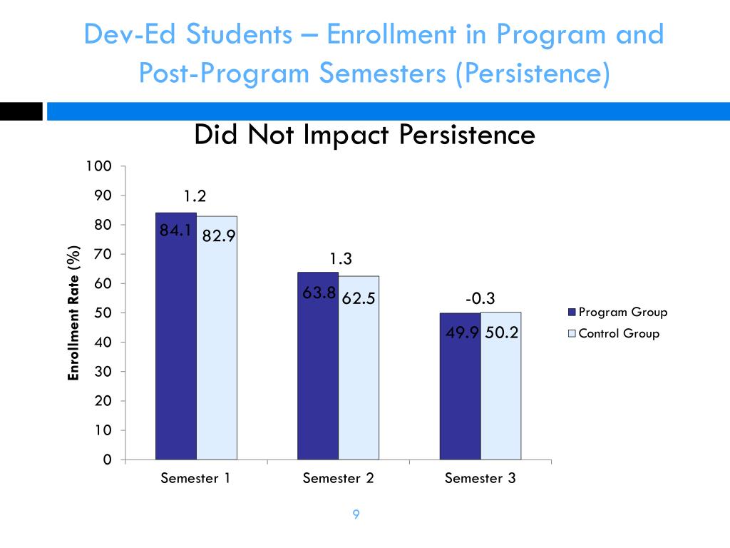 Dev-Ed Students – Enrollment in Program and Post-Program Semesters (Persistence) Did Not Impact Persistence 9