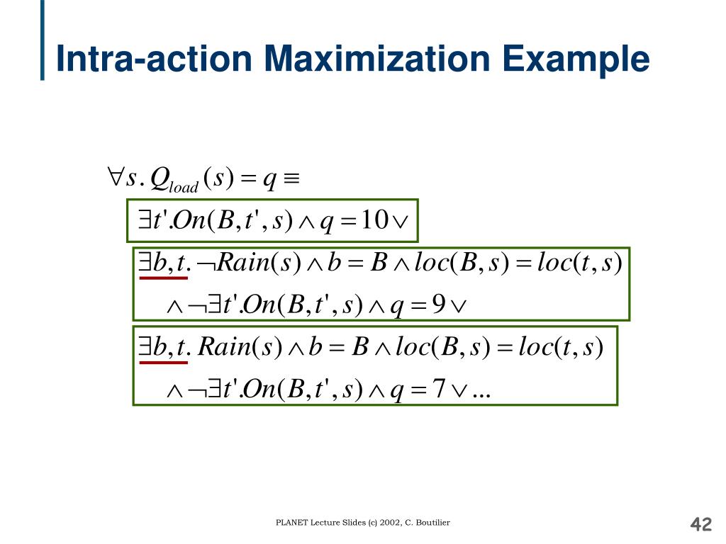Intra-action Maximization Example PLANET Lecture Slides (c) 2002, C. Boutilier