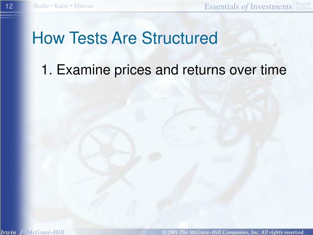 Empirical Tests of Market Efficiency • Event studies • Assessing performance of professional managers • Testing some trading rule