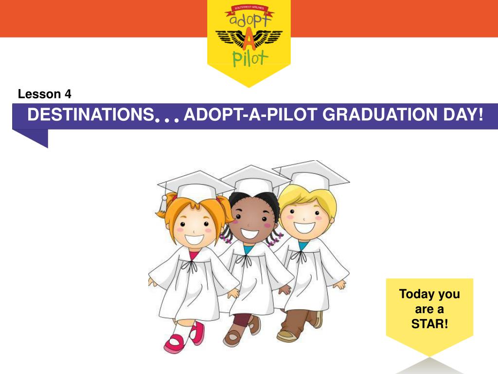 Lesson 4 DESTINATIONSADOPT-A-PILOT GRADUATION DAY! Today you are a STAR!