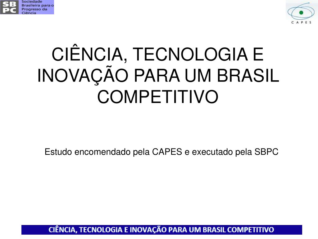 CIÊNCIA, TECNOLOGIA E INOVAÇÃO PARA UM BRASIL COMPETITIVO Estudo encomendado pela CAPES e executado pela SBPC