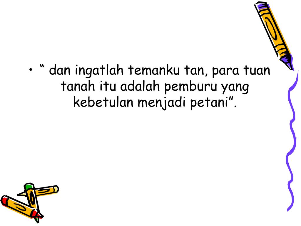 “ dan ingatlah temanku tan, para tuan tanah itu adalah pemburu yang kebetulan menjadi petani”.