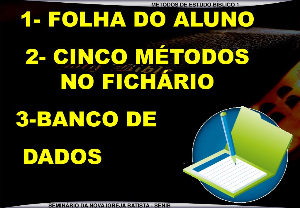 1- FOLHA DO ALUNO 2- CINCO MÉTODOS NO FICHÁRIO 3-BANCO DE DADOS