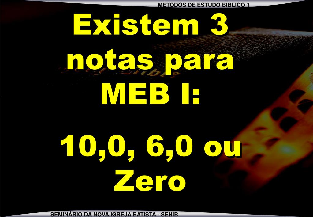Existem 3 notas para MEB I: 10,0, 6,0 ou Zero