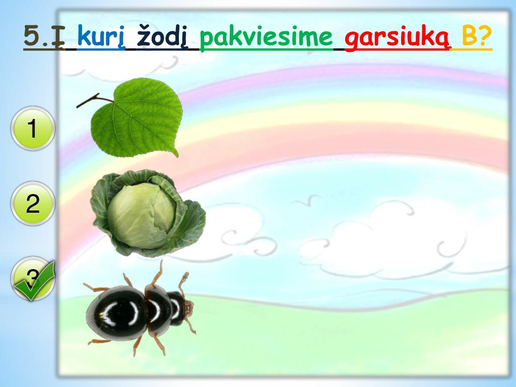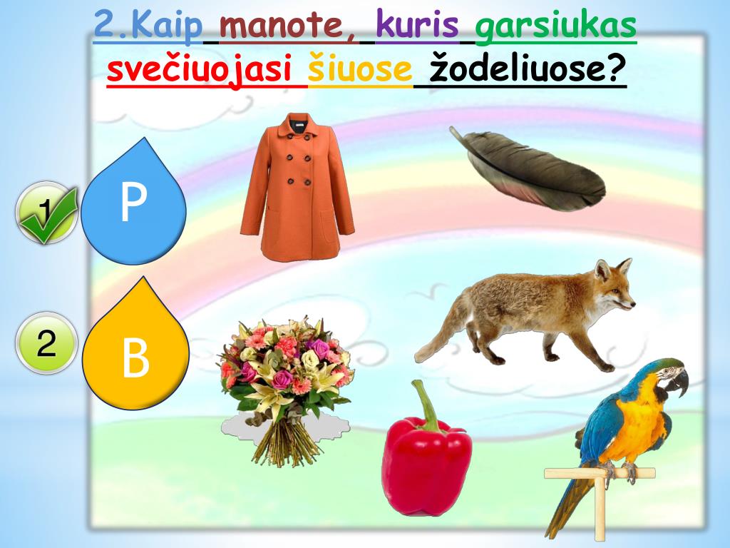1. Kaipmanote,kurisgarsiukassvečiuojasi šiuose žodeliuose? P B