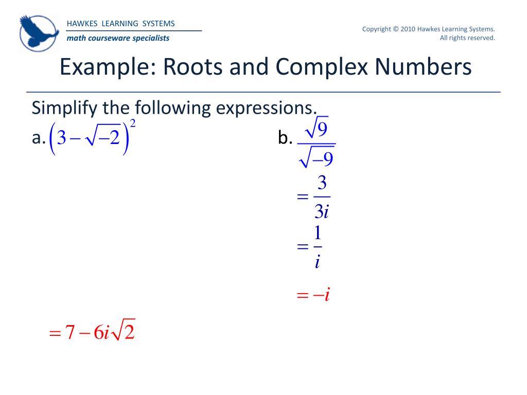 Hawkes Learning Systems: College Algebra Section 1.6: The Complex Number System