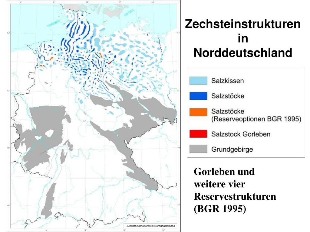 Zechsteinstrukturen in Norddeutschland Gorleben und weitere vier Reservestrukturen (BGR 1995)