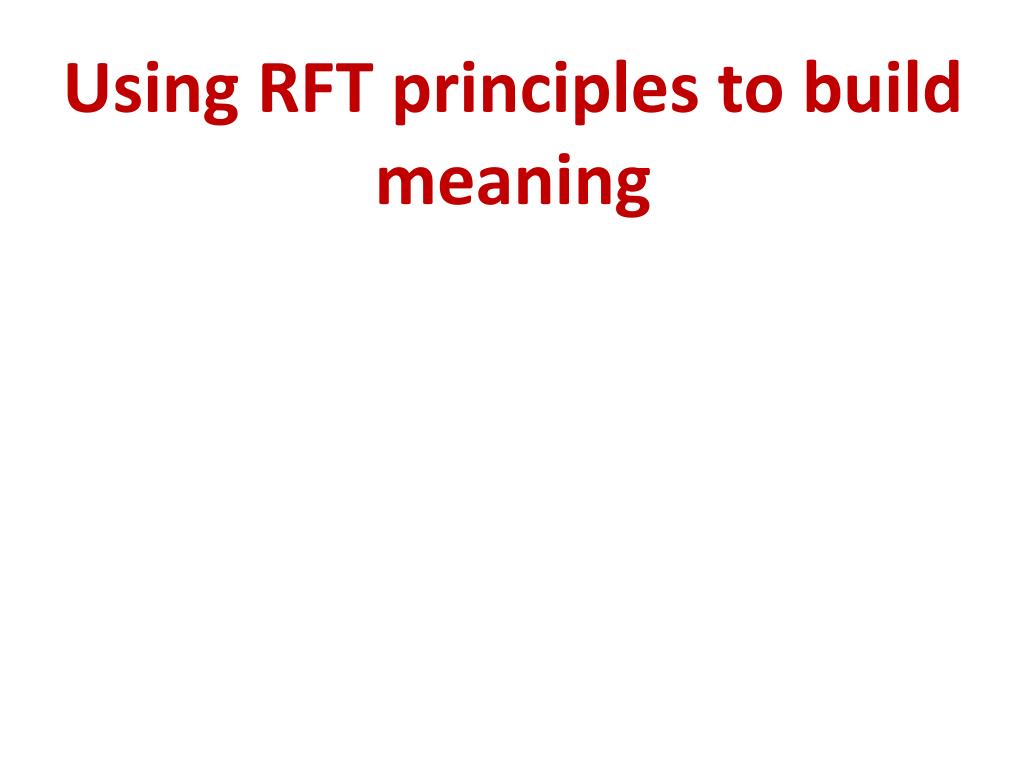 Using RFT principles to build meaning Language is something we do:Building and responding to symbolic relations among things.