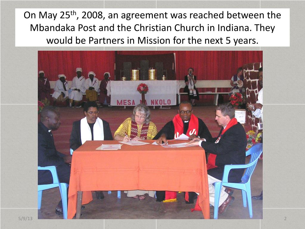 Partners in Mission May 25, 2013 The fifth anniversary of the partnership between the Mbandaka Post, Disciples of Christ in Congo and the Christian Church in Indiana