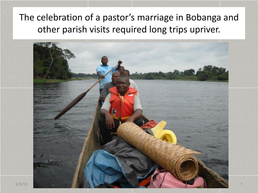 The celebration of a pastor’s marriage in Bobanga and other parish visits required long trips upriver.